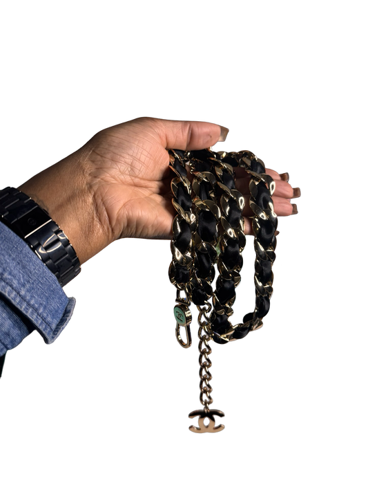 CHANEL 2008 Black Satin Braid Signature Woven Chain Link CC Logo Belt (Preloved)