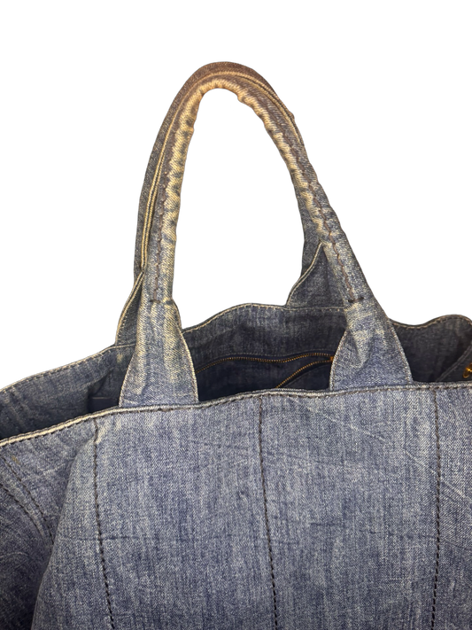 Prada Large Denim Canapa Tote (Preowned)