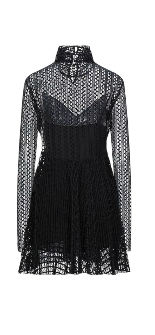 Philosophy di Lorenzo Serafini Black Open-Knit Pleated Mini Dress - IT 44 / US 8 - NWT