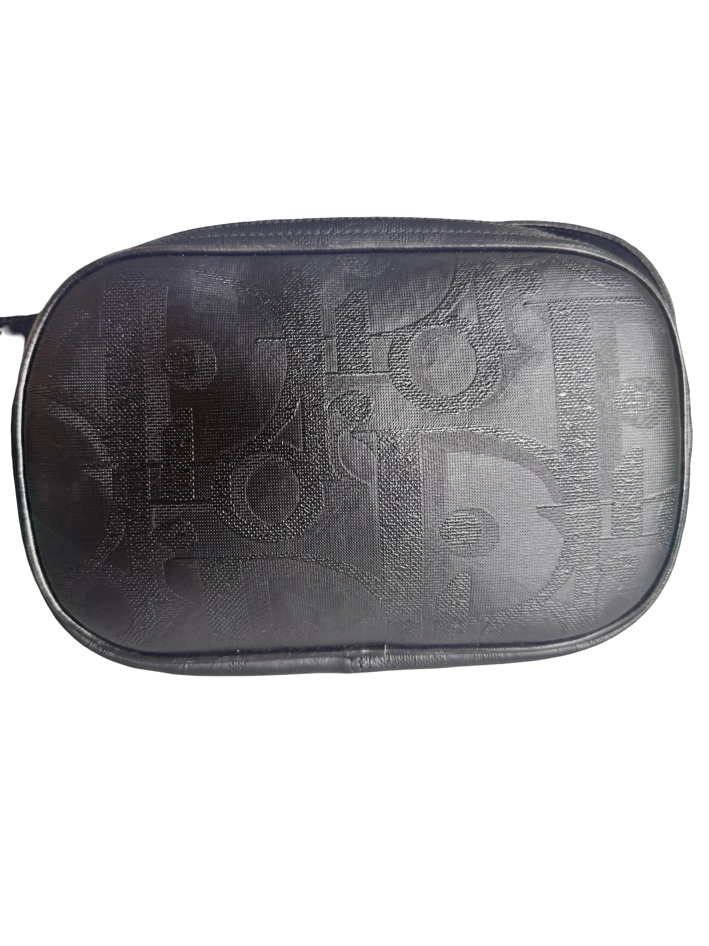 A classic statement piece from the Dior archives. This vintage Christian Dior crossbody bag features the iconic oblique monogram in rich black jacquard canvas, accented with sleek black leather and a striking gold-tone buckle engraved with Christian Dior.