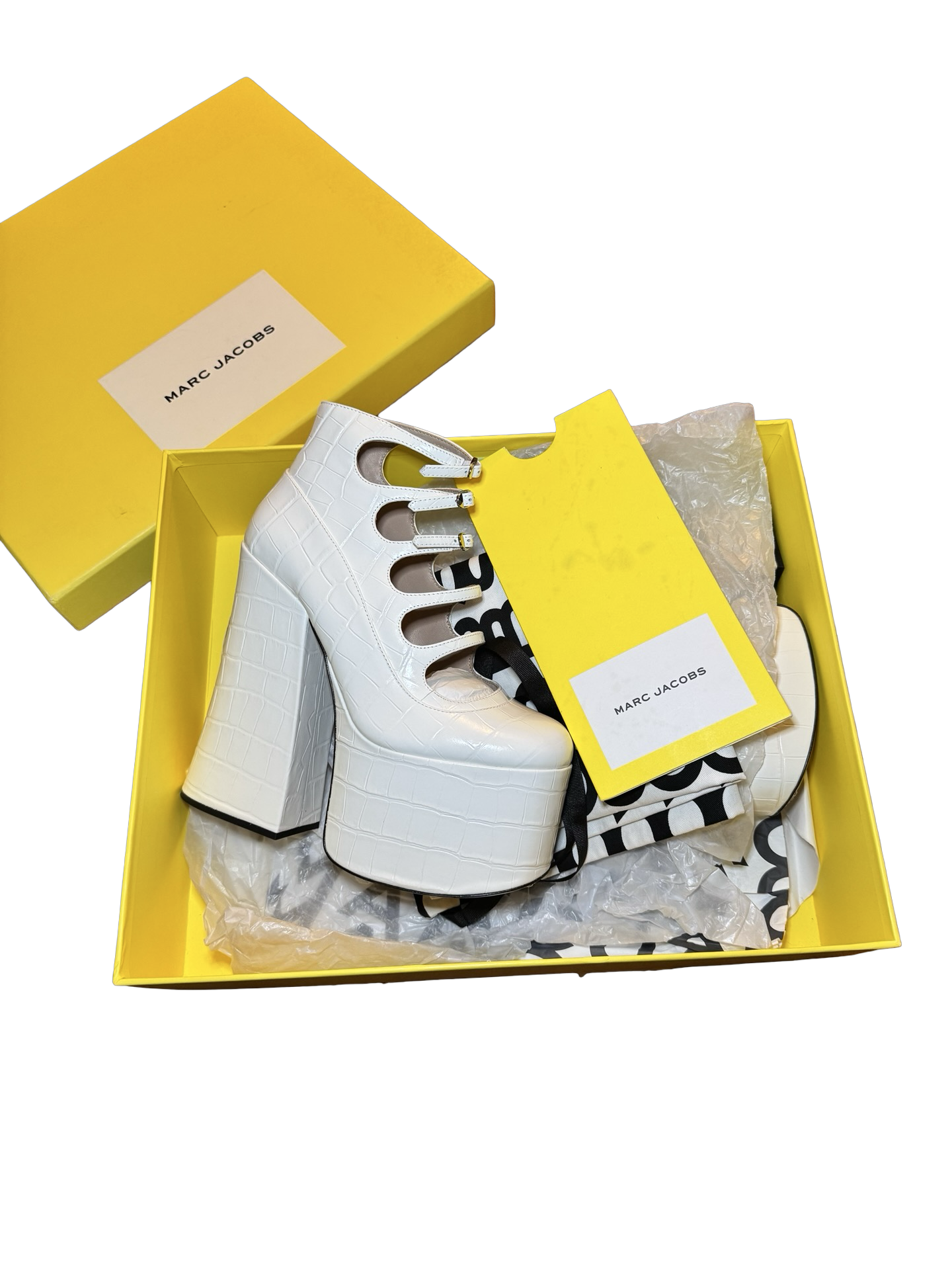 Elevate your footwear game (literally) with these iconic Marc Jacobs Kiki Ankle Boots. Known for their dramatic silhouette and high-fashion edge, these boots are a must-have for any serious collector or fashion enthusiast. These are brand new, never worn, and come in their original Marc Jacobs box with the dust bag.