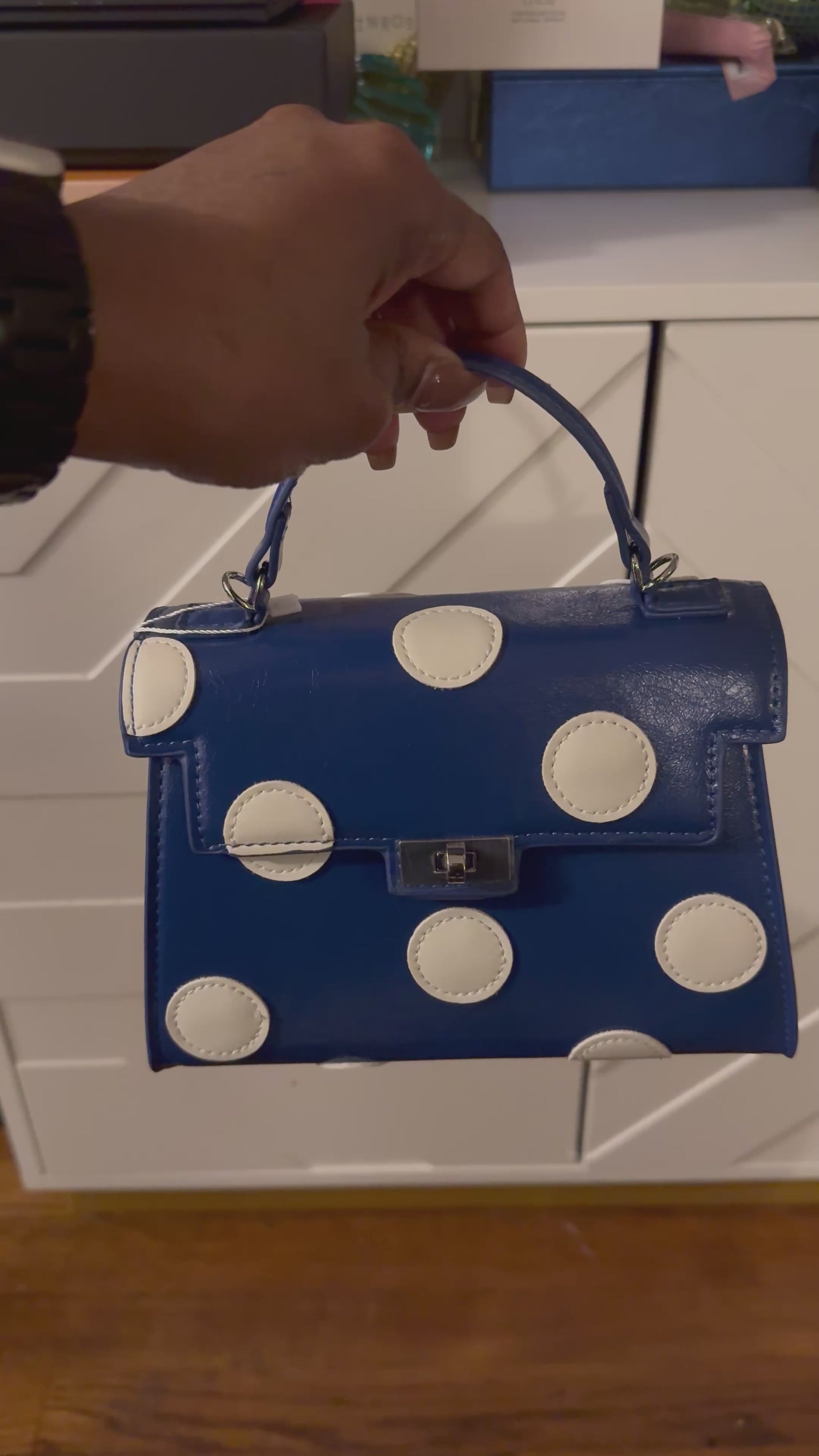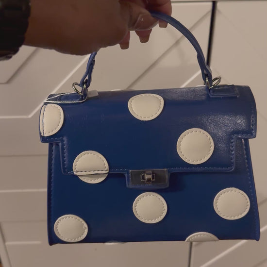 Melie Bianco Blue Polka Dot Mini Top-Handle Bag